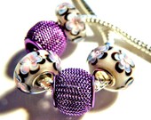 SHOp WIDe SALe and FREE SHIPPING European bead Set purple pink white blue charms PBS884 - $10.79