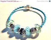 SHOp WIDe SALE and FREe SHIPPINg european beads leather bracelet 8" aqua blue LIMITEd EDITIOn - $16.19